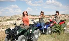 ATV motor safari, designed for persons who want to be away from the boredom of this world, take time off oneself and feel some excitement, is just for the ones who fear from riding motorbike but would like to taste the enjoyment. These are the daily pleasure travels and tours away from asphalt-paved roads and crowd in order to; explore matchless panoramic view of Cappadocia region, live an adventure in the tracks which are hilly and crumbled into dust, let rest both your eyes and your soul by becoming a united whole with nature in the greenery of pines, under the blueness of sky, between the purpleness of mountains and redness cover of fairychimneys. This is a vehicle you will not need licence and will drive without any fear with its four wheels, feel great fun and safari enjoyment, full of adrenaline and enthusiasm in environment, sometimes muddy or wet and sometimes full of panorama and nature.