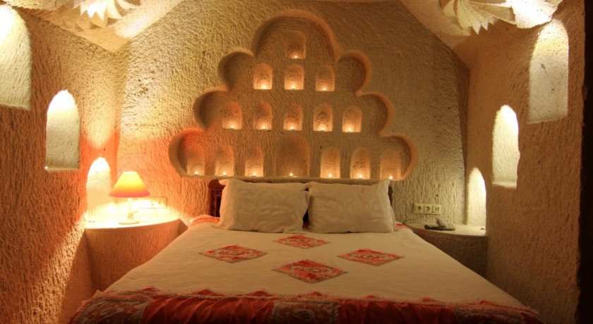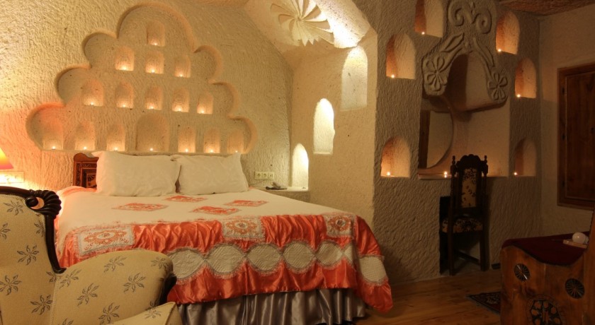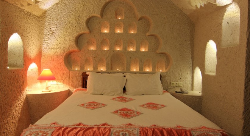 Bed options: 1 full or 2 twin This cave room features a bath or a shower.