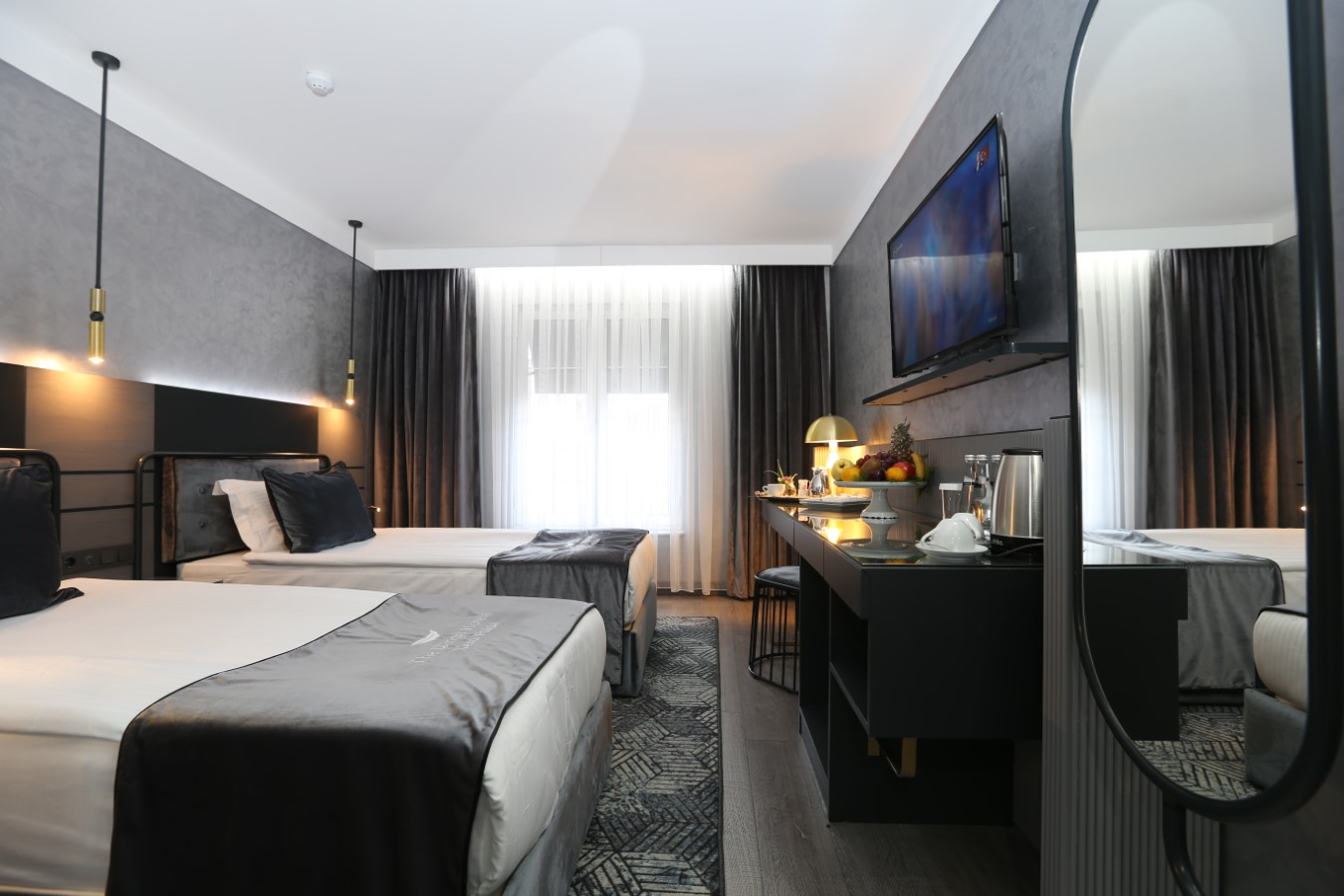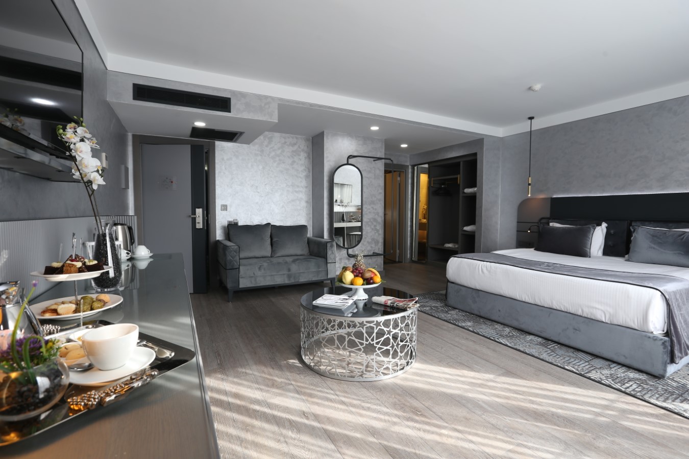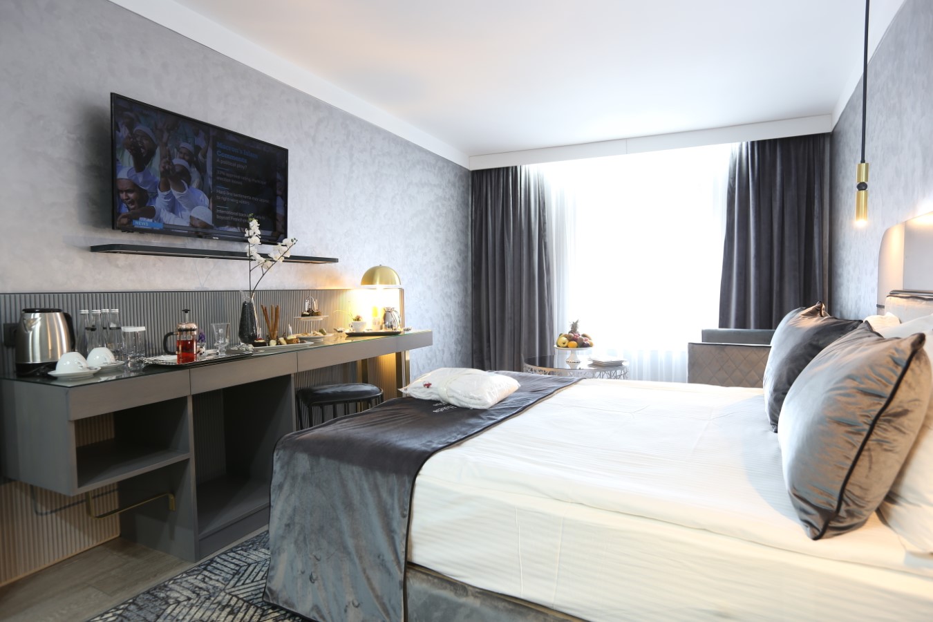Free wireless high-speed internet access in our rooms, Rain Shower, Bathrobes and Slippers, 43 inch Full HD LED TV, In-room laptop-sized electronic safe, Air conditioning, Hair Dryer, Work Desk, Laundry and Ironing Facilities, Minibar, free tea Kettle set with coffee options.